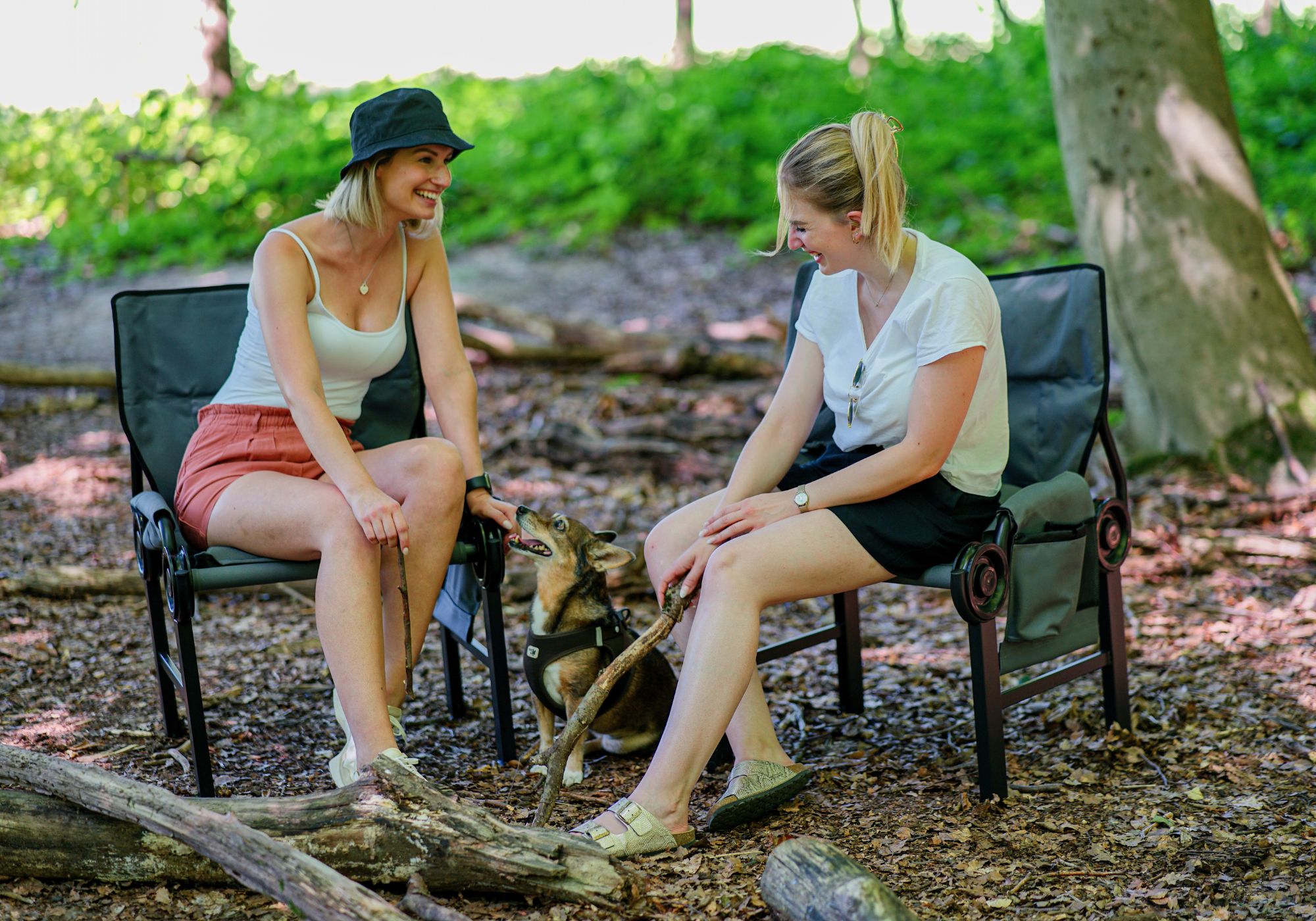 Dank robuster Materialien und cleverem Design sitzt du stabil, auch auf unebenem Boden. Einfach aufbauen, hinsetzen und den Moment genießen.