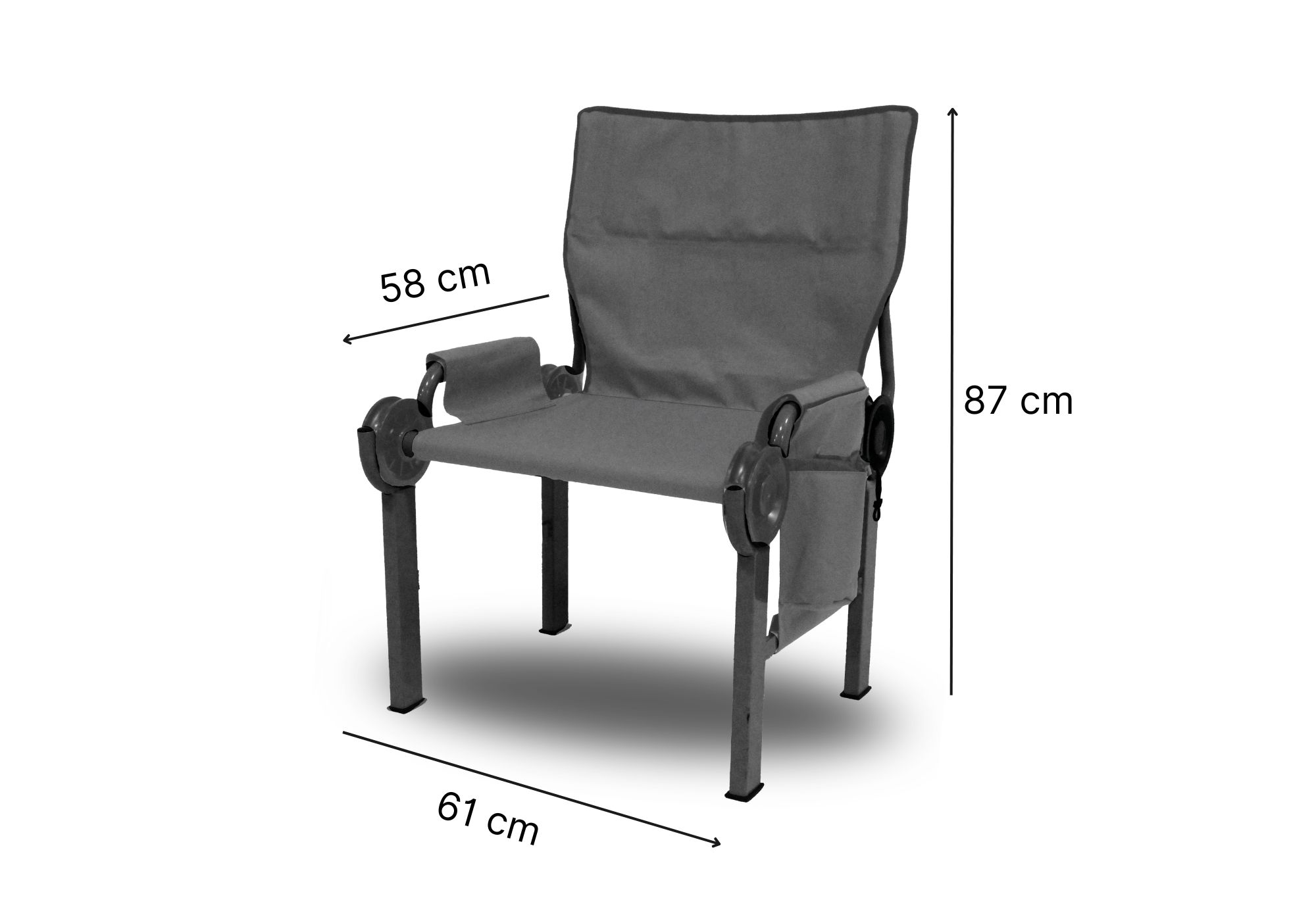 Disc-Chair – extrem robuster Campingstuhl, belastbar bis 350 kg. Mit abnehmbarer, pflegeleichter Sitzfläche, Rücken- und Seitentaschen für Stauraum sowie praktischer Tragetasche für einfachen Transport.