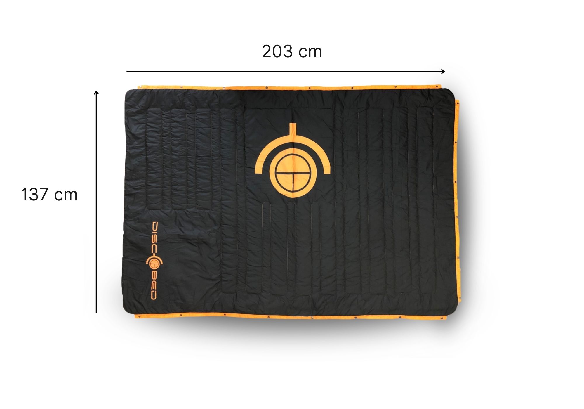Als Schlafsack: 203 × 69 × 4 cm.